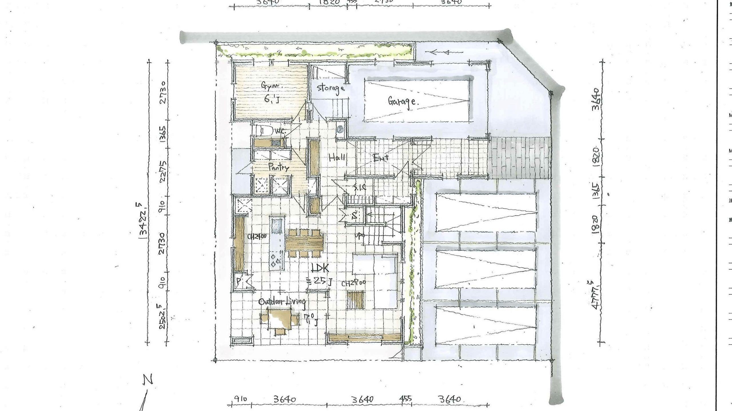 ビルトインガレージを持たれる方は、愛車のメンテナンスを行う方が多いものです。車のスペースはギリギリではなく、メンテナンスするときに動きやすいスペースも考えておきましょう。(3)延べ床面積を考えておく