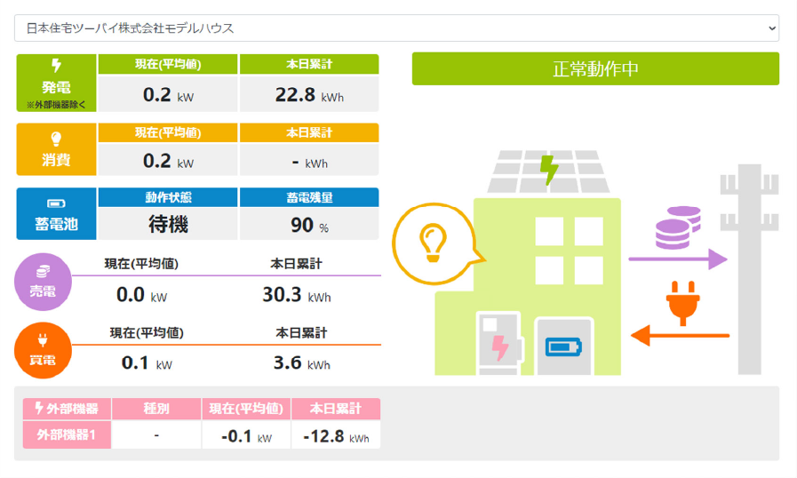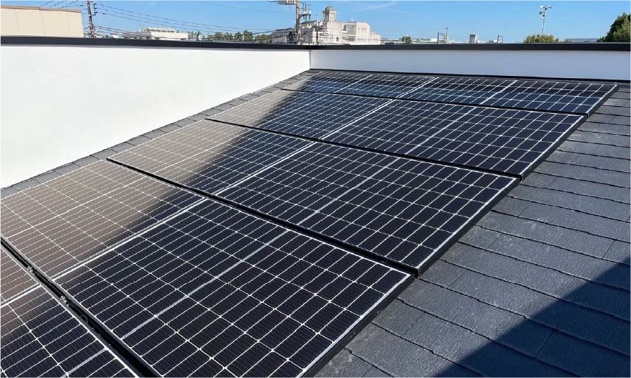 カーボンニュートラル対策の一つとして南林間モデルハウスの消費電力を太陽光発電システムによる自家発電でまかなっています。