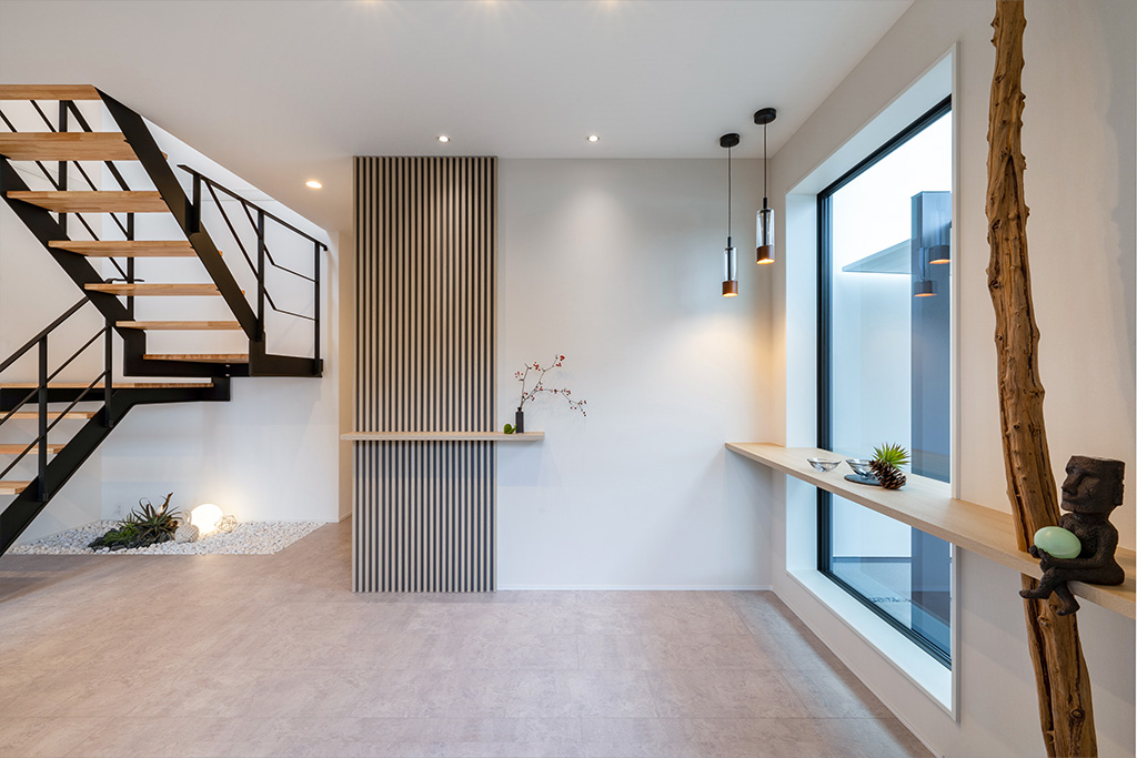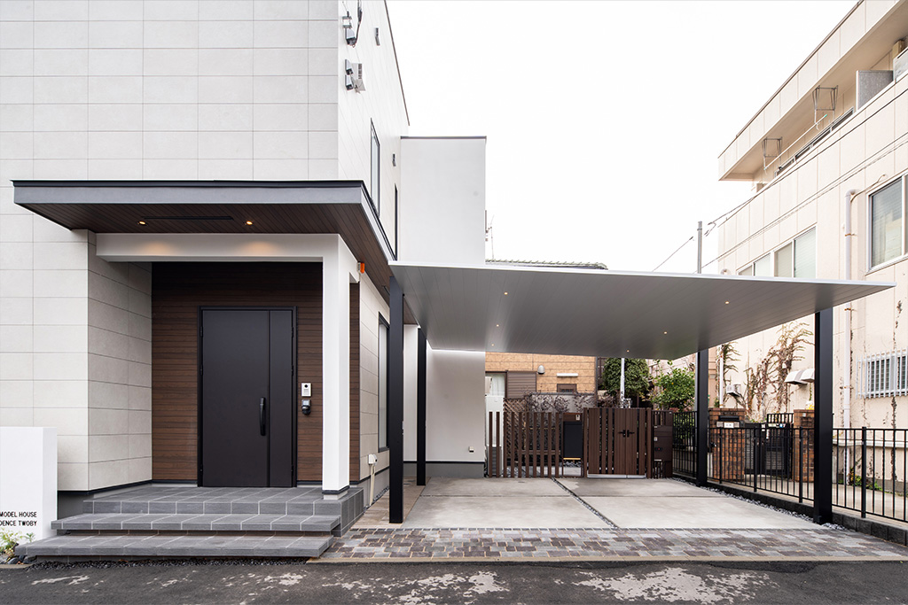 家づくりにおいて後回しにされがちの外構。しかし後回しにしたことにより、後悔するケースが多いため、外構も時間をかけて考え抜きたいポイントです。南林間モデルハウスでは外観にマッチさせるため外構もシンプルでシャープな印象になるようにまとめました。