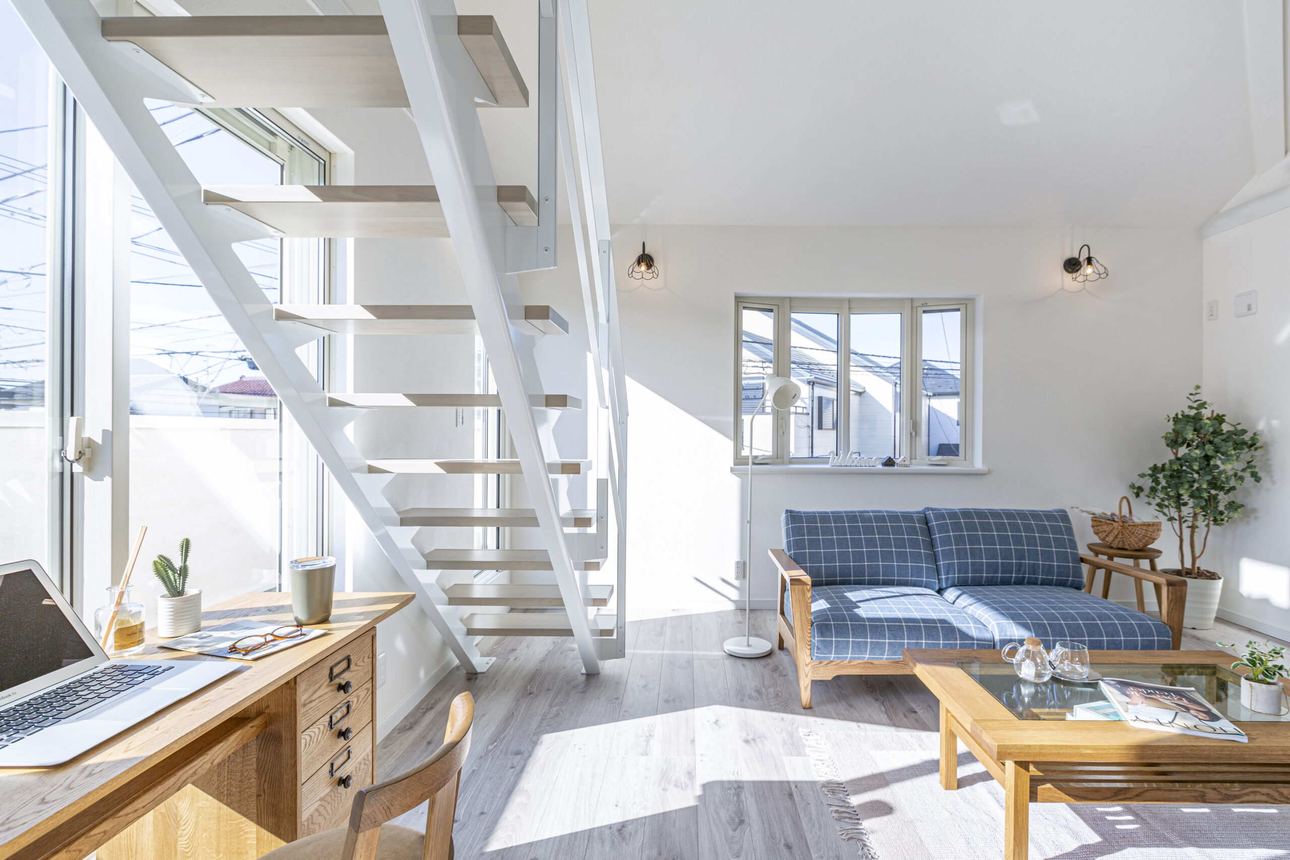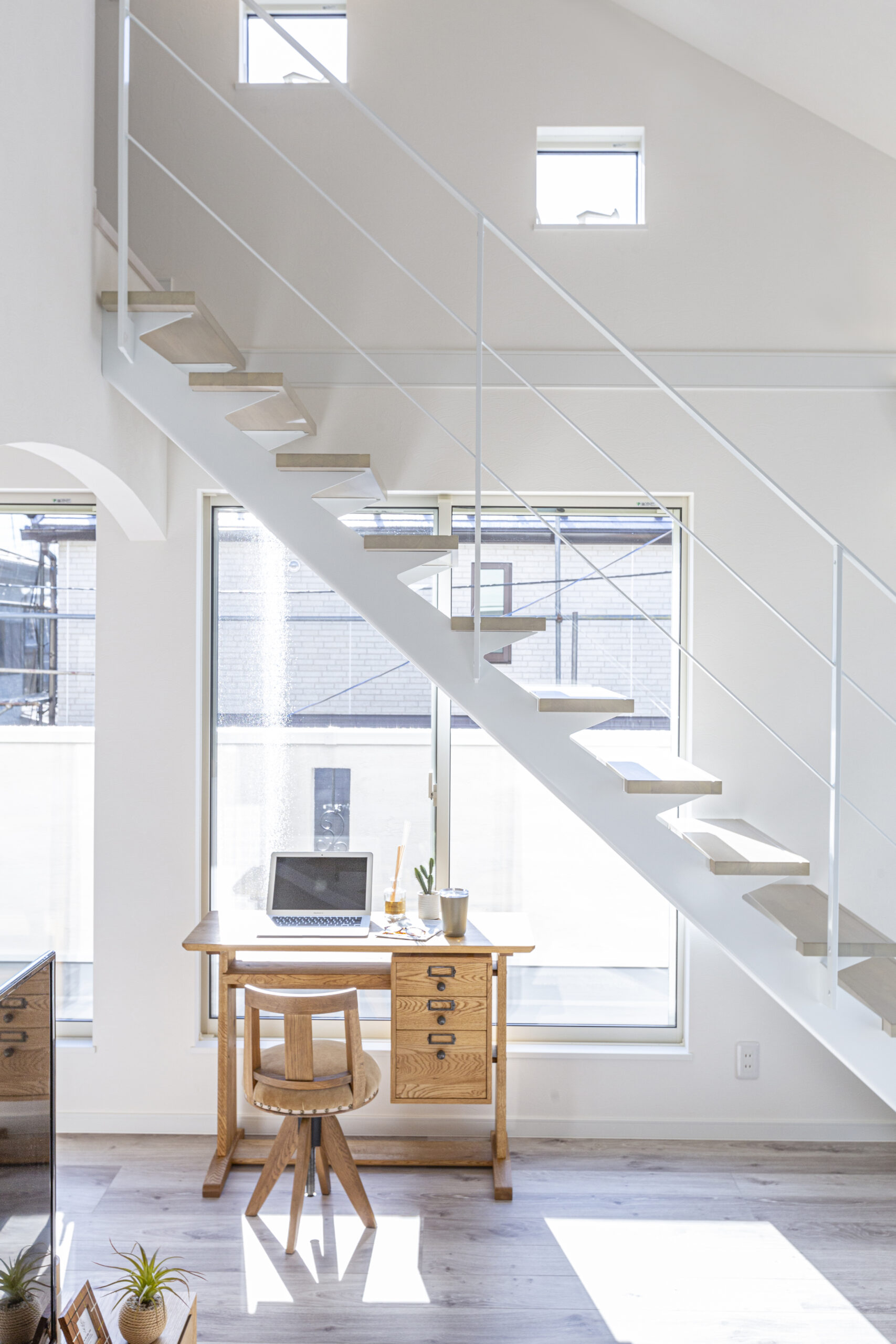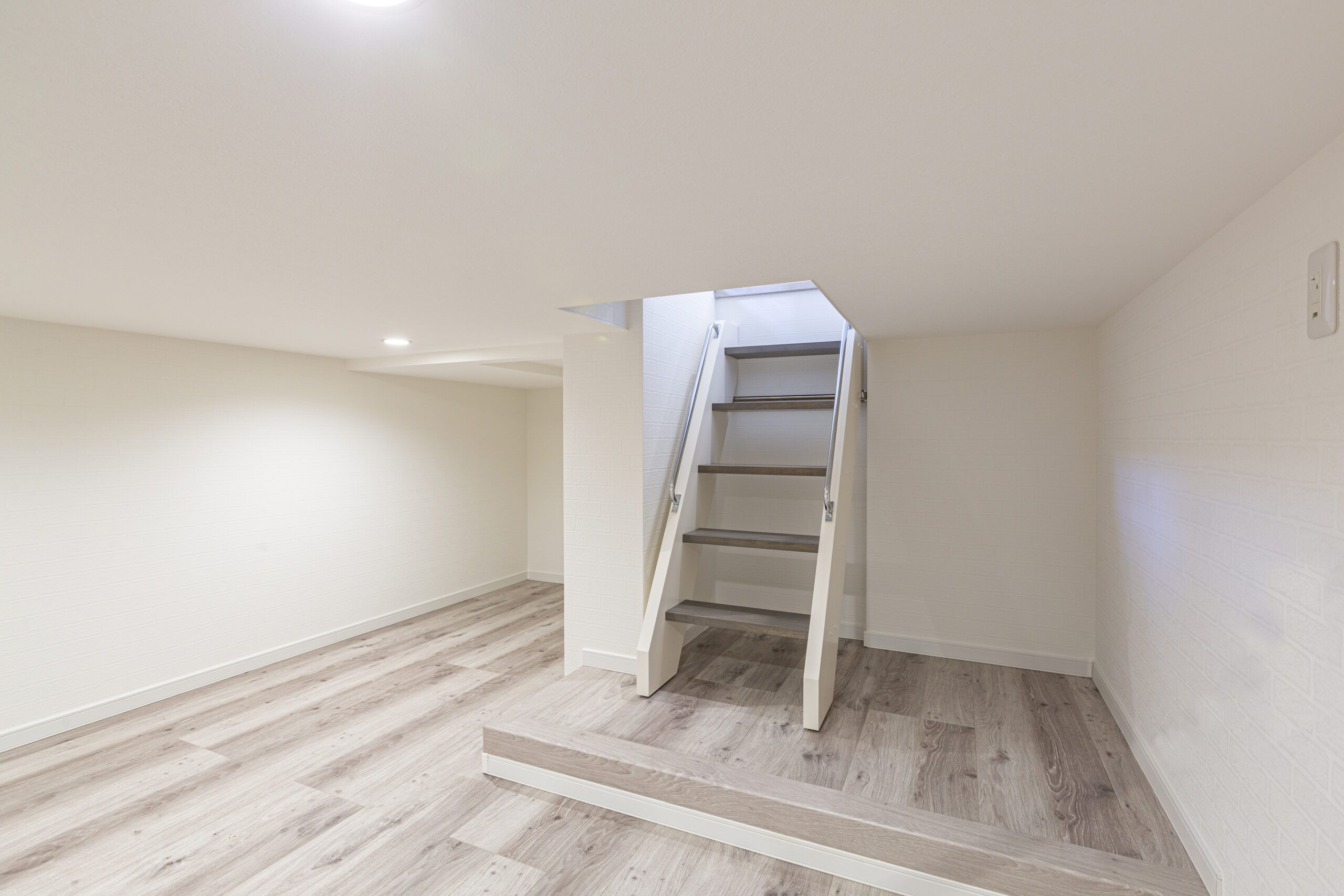 • 1階から半地下収納までは造作ハシゴ、2階からロフトまではスリット階段にして、ロフトも半地下も少しでも歩きやすく、行き来しやすい仕様となっています。