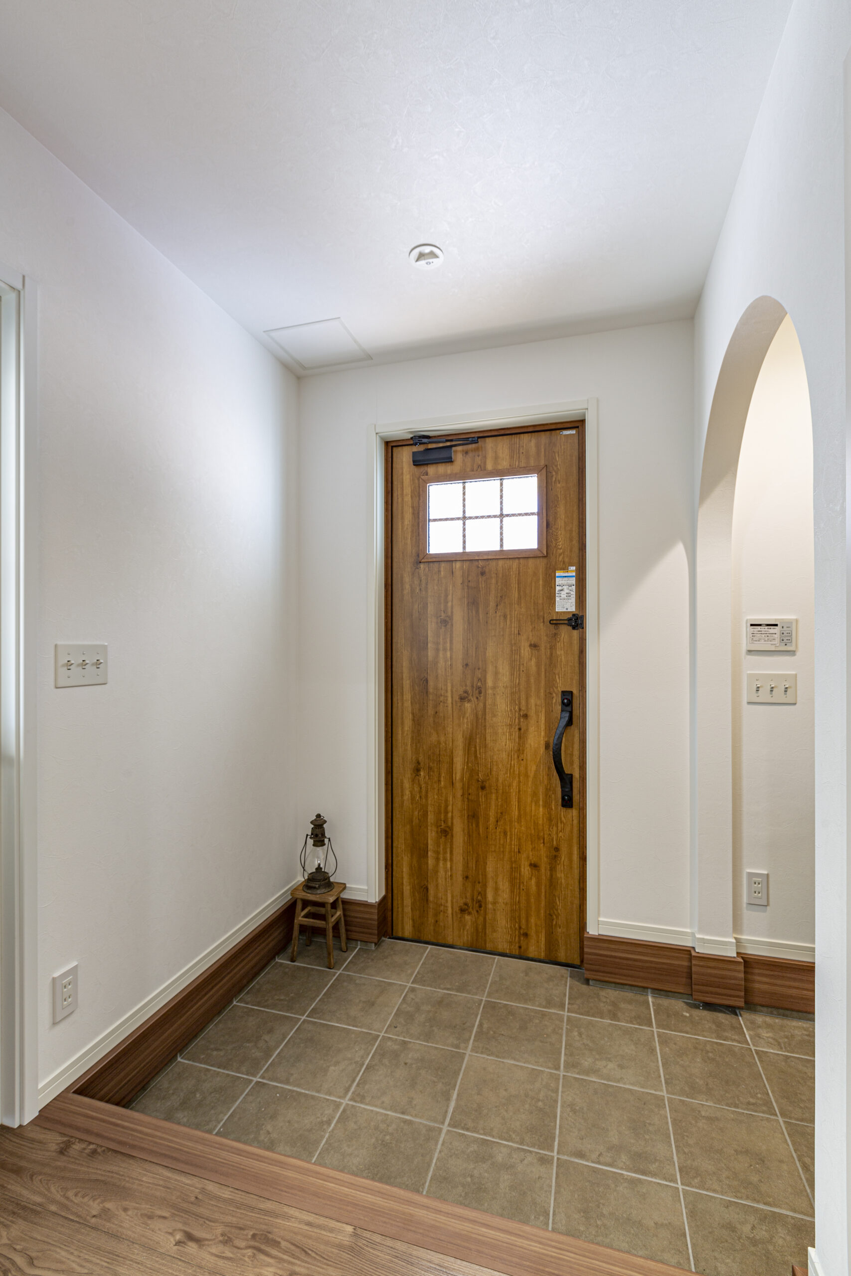 入口の上部を半円アーチにすることで、やさしい可愛らしさがプラスされています。