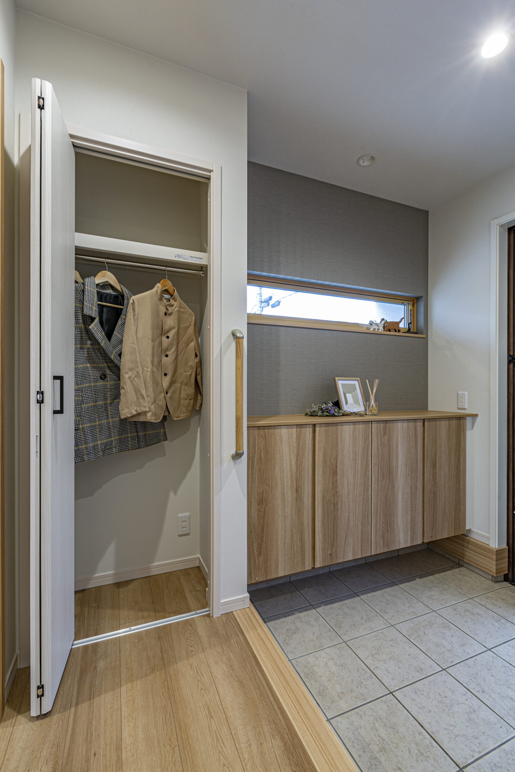 • また、玄関周りが散らかることがないように、シューズクローゼットだけではなく、ジャケットなどを収納できるスペースも確保しました!