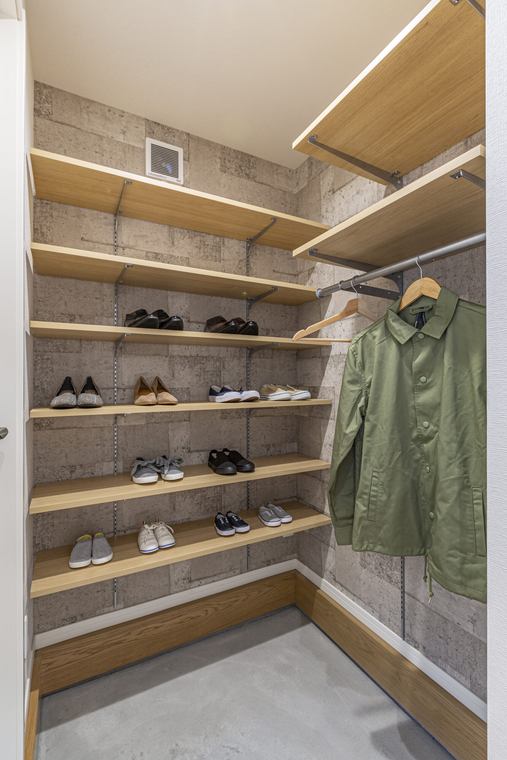 • 約1.2畳のSICにはシューズクロークだけではなく、高さも生かしたコートクロークも。