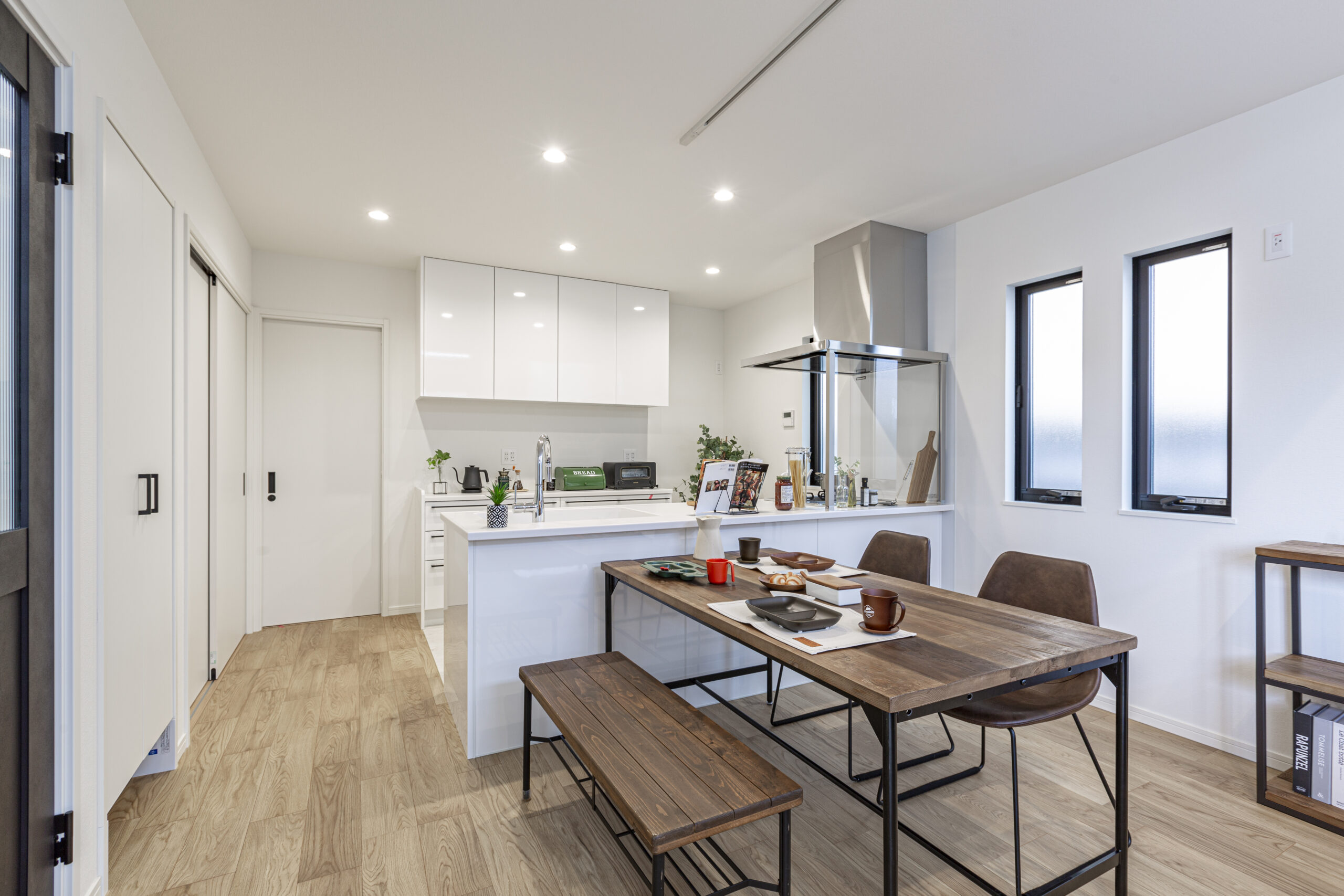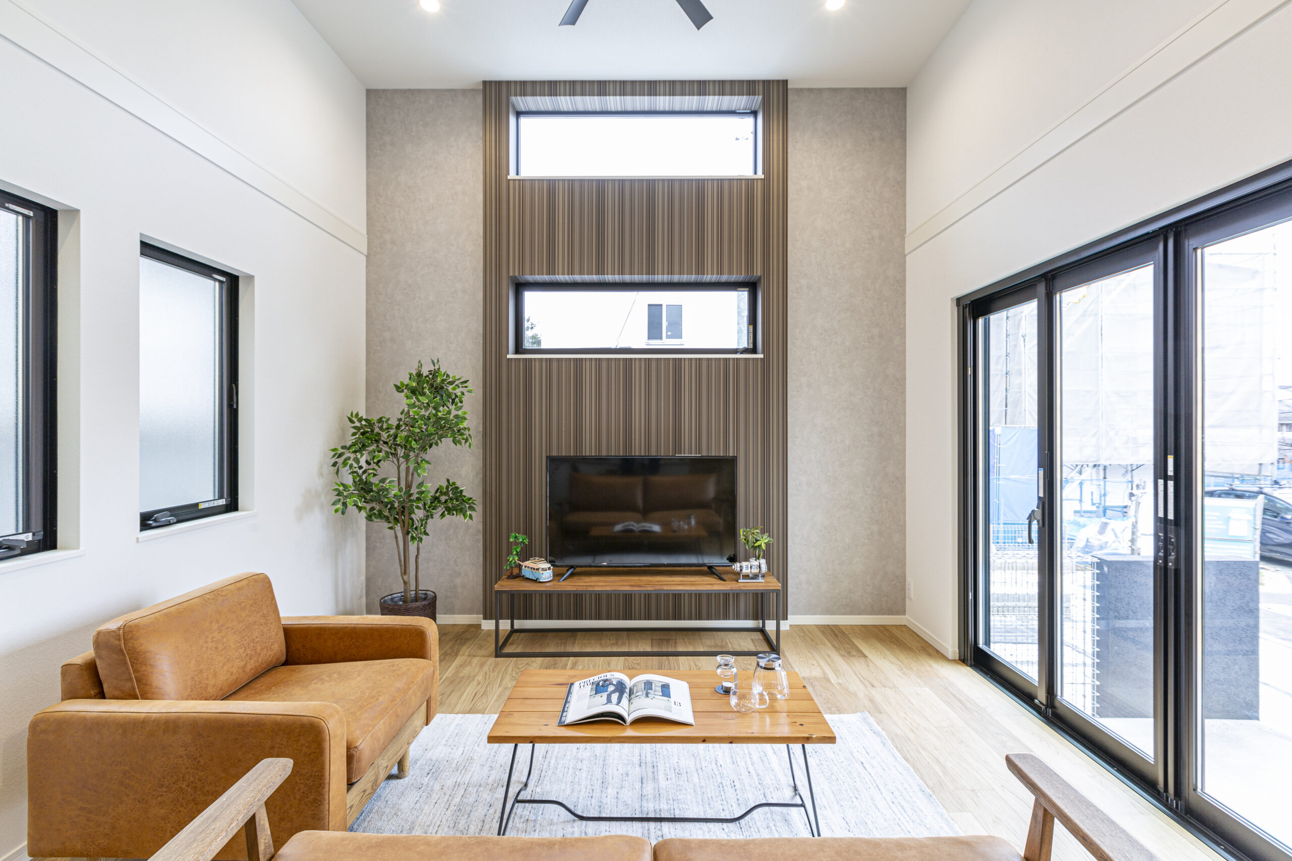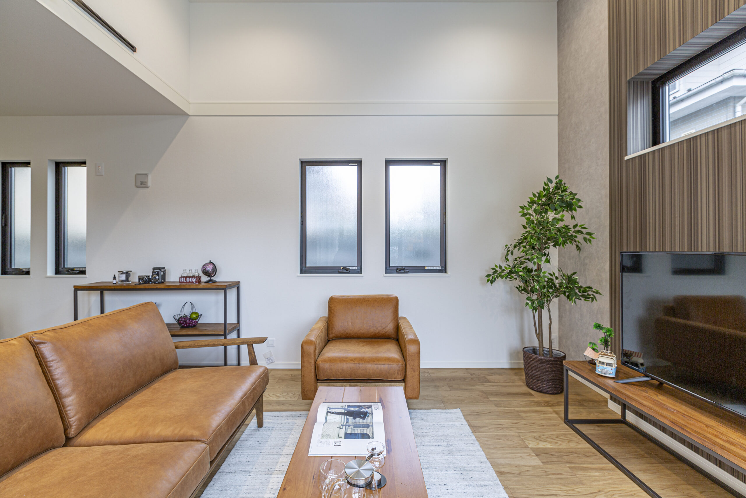 • 高天井×フカシ壁で、開放感抜群のリビングダイニングに。