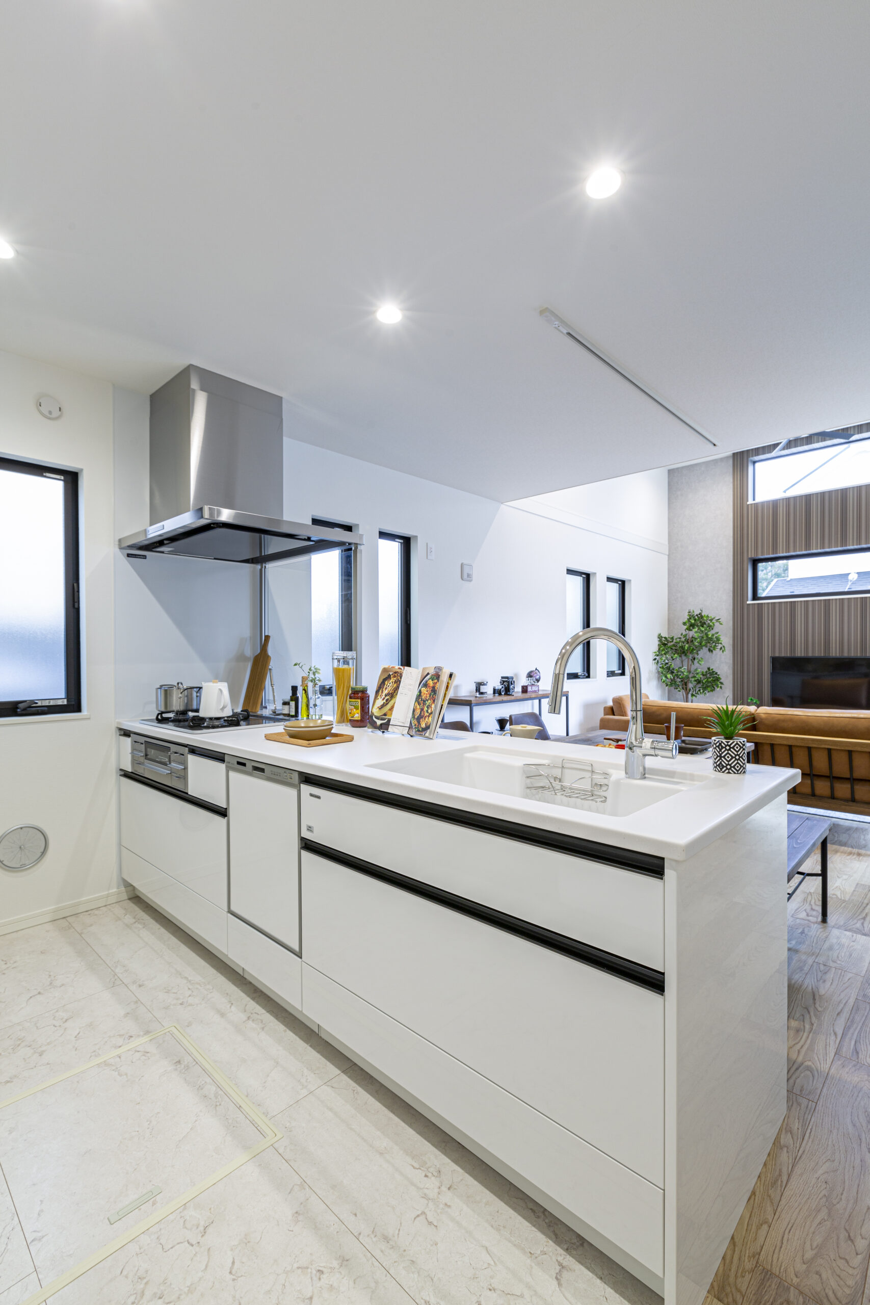 • キッチンはタカラスタンダードのシステムキッチン オフェリアを採用。白×黒をメインにカラーをまとめました。