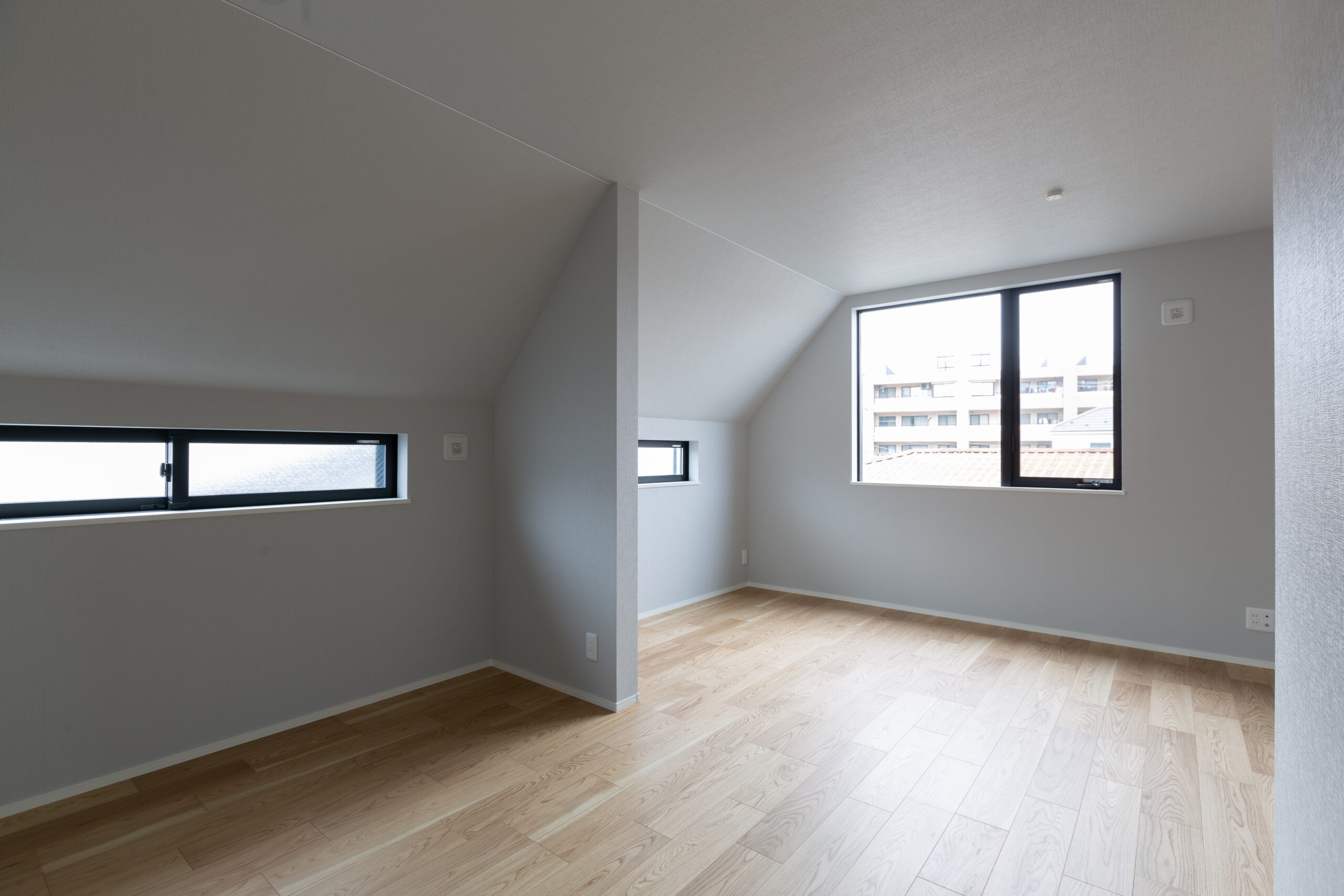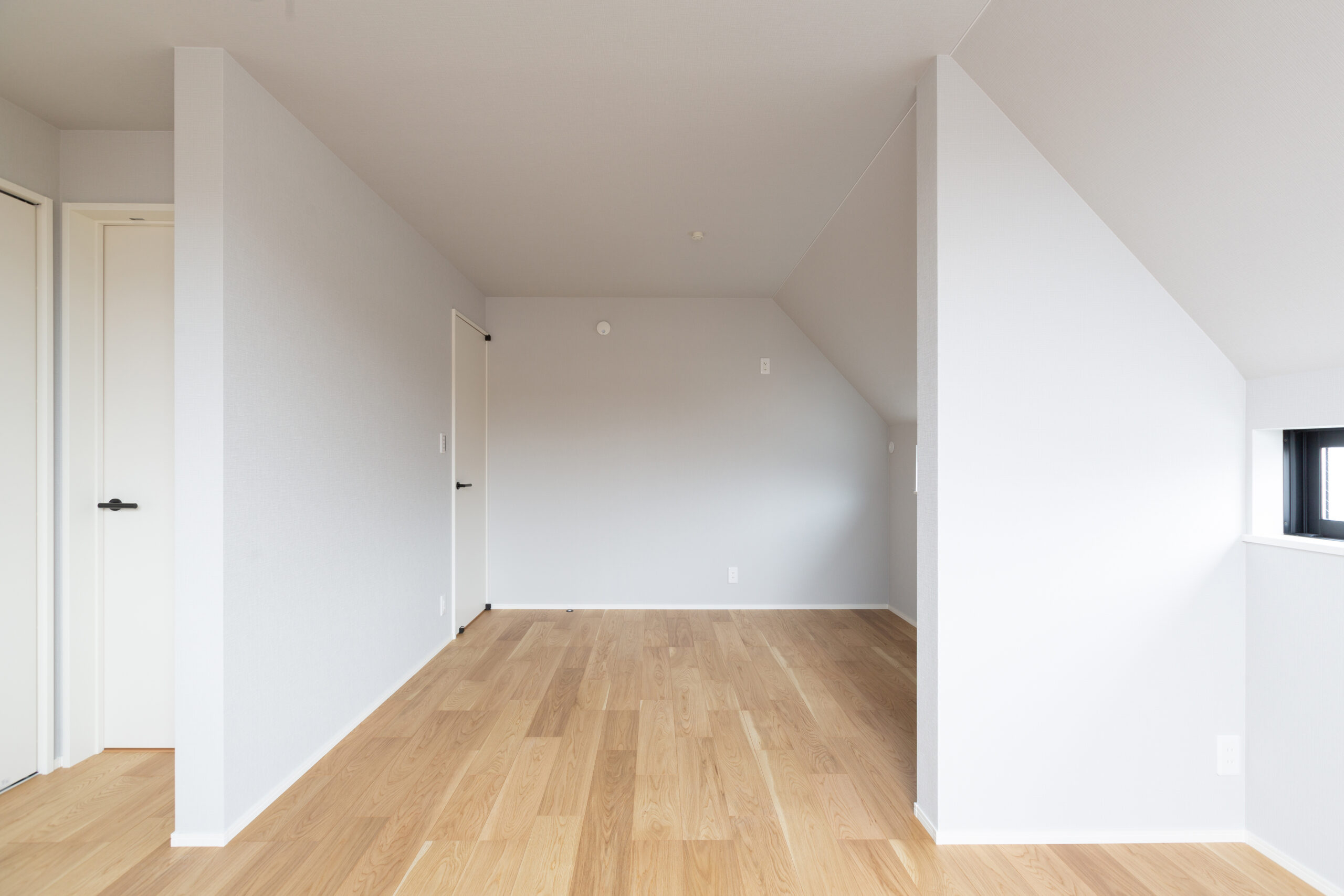 子供部屋は現在、小さいお子様なので広々と一部屋使用して、将来的に間仕切りが出来るように最初から居室の扉を二箇所設置してあります。