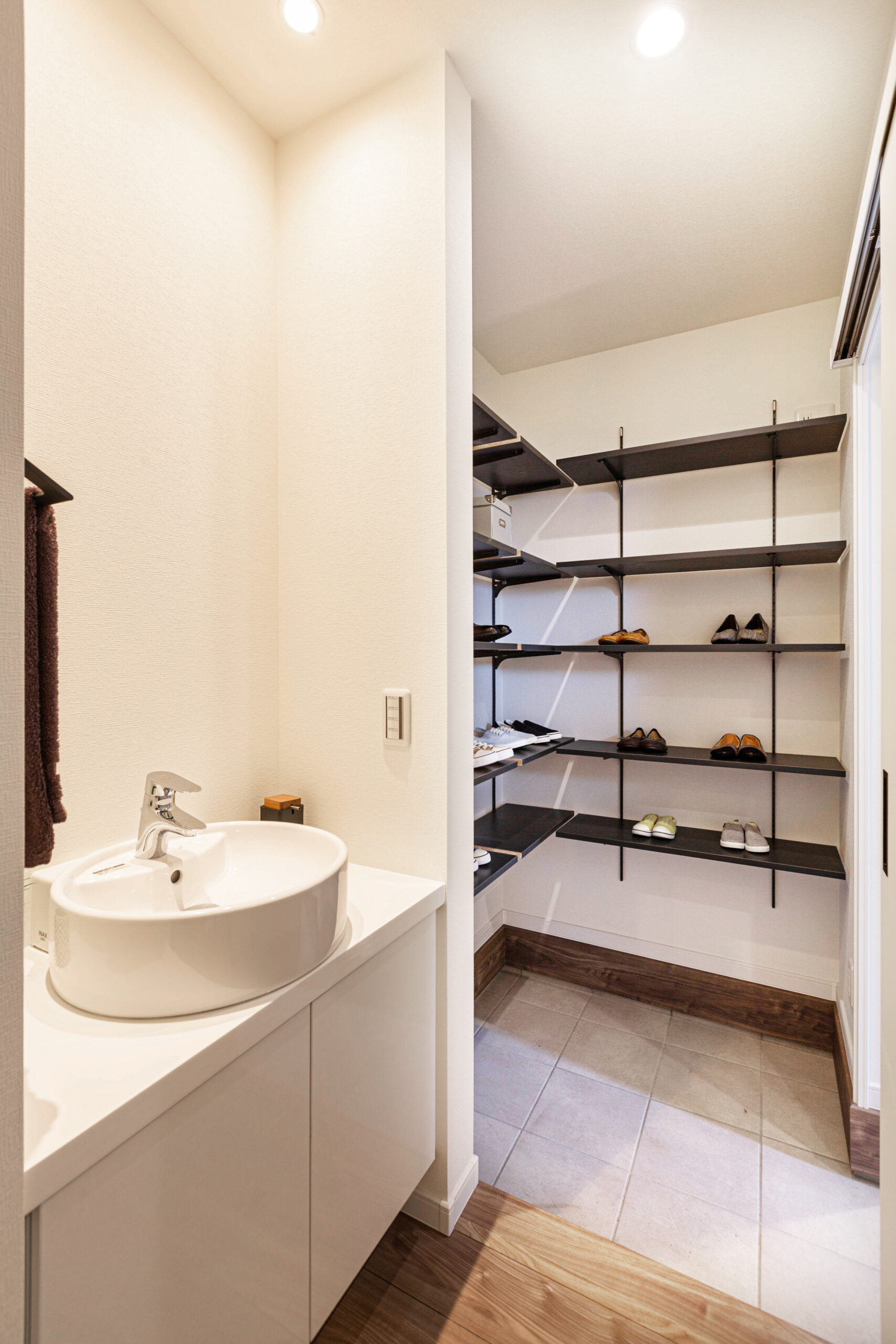 さらにシューズスルークローク内にはセカンド洗面を設置し、帰宅後すぐに手洗いができる衛生的な動線を実現しました。