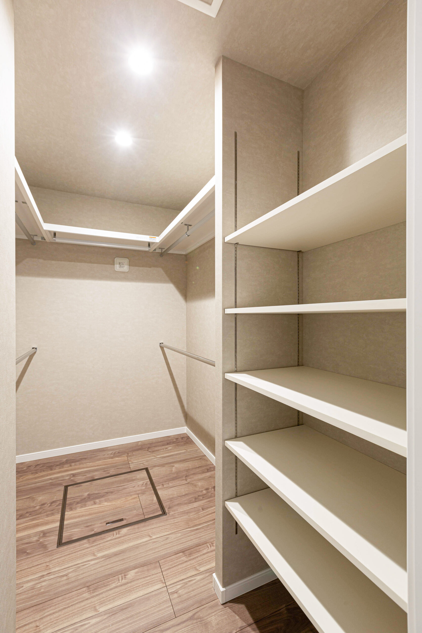 • 主寝室の収納はW.I.Cを採用いたしました。ハンガーパイプを上下に付けることによって収納量は2倍になり、長物の洋服はハンガーパイプが取り外し可能になっているので、使用用途によって使い分けられるようになっております。