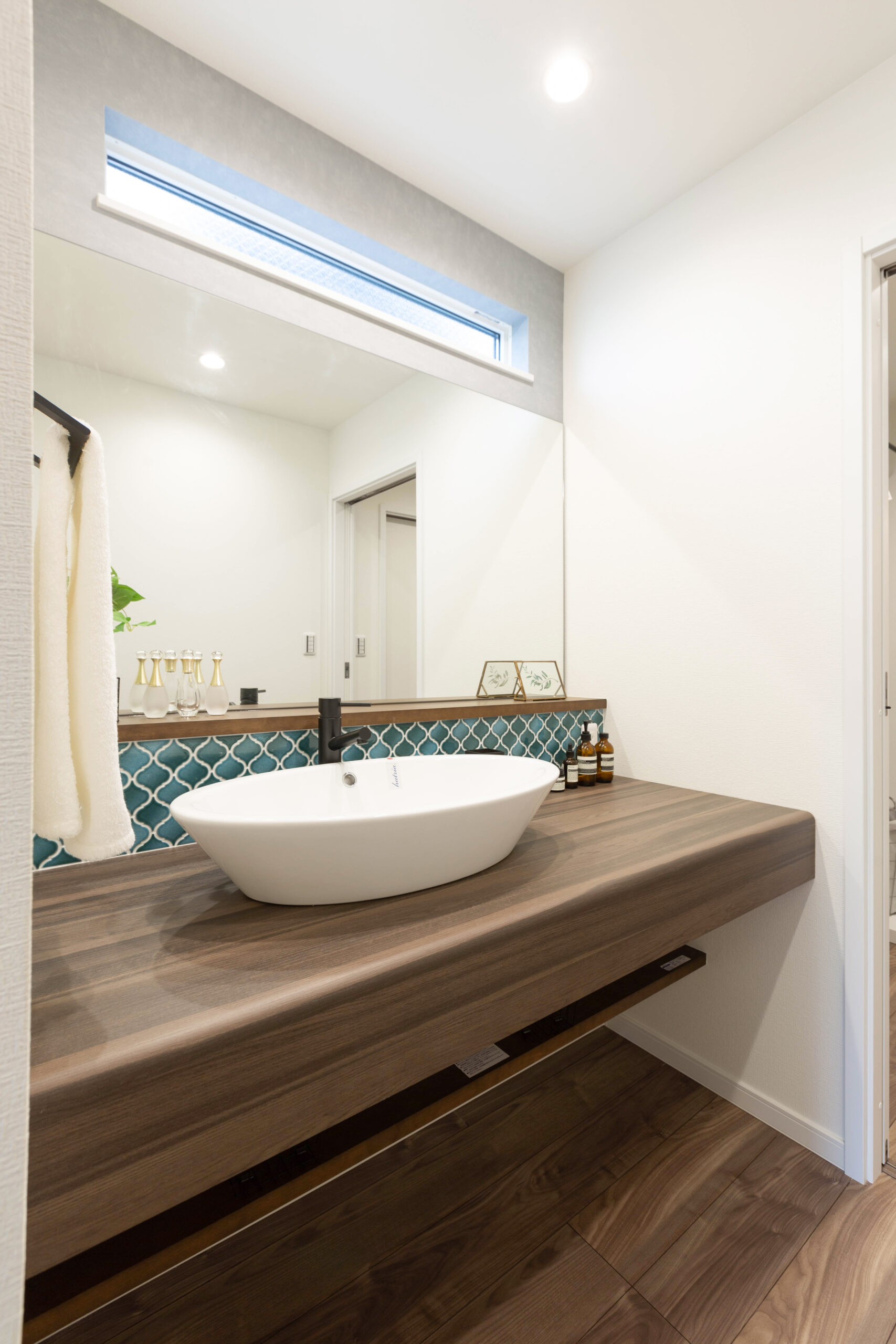 • 洗面はおしゃれな造作洗面となっております。造作洗面を選択された方は既成の洗面台とは違い、洗面ボウルから鏡、台の形や色までお選びいただけます。