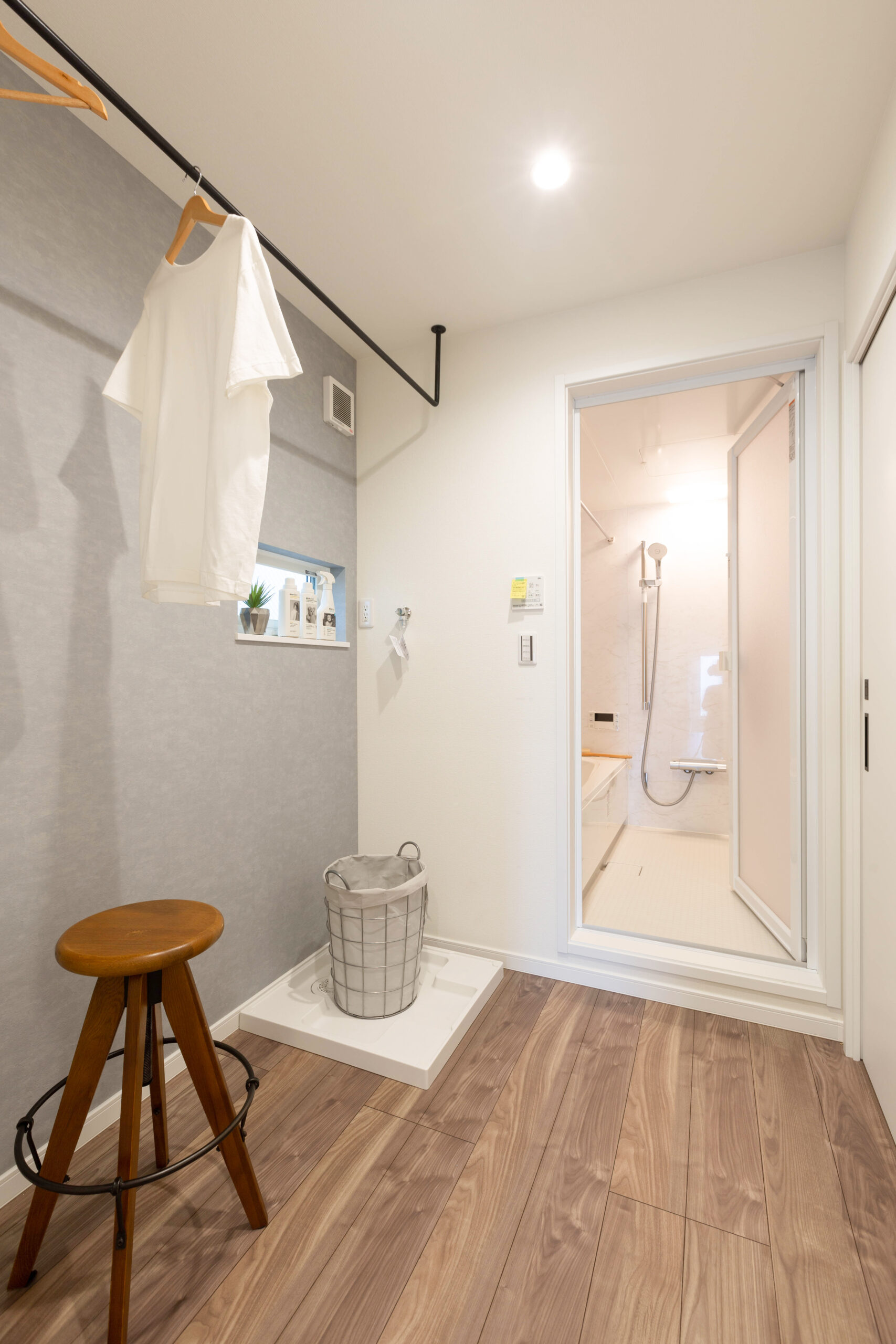 • 脱衣室には特注のアイアンバーを採用しており、花粉の時期や雨の日でも室内干しが出来るようになっております。