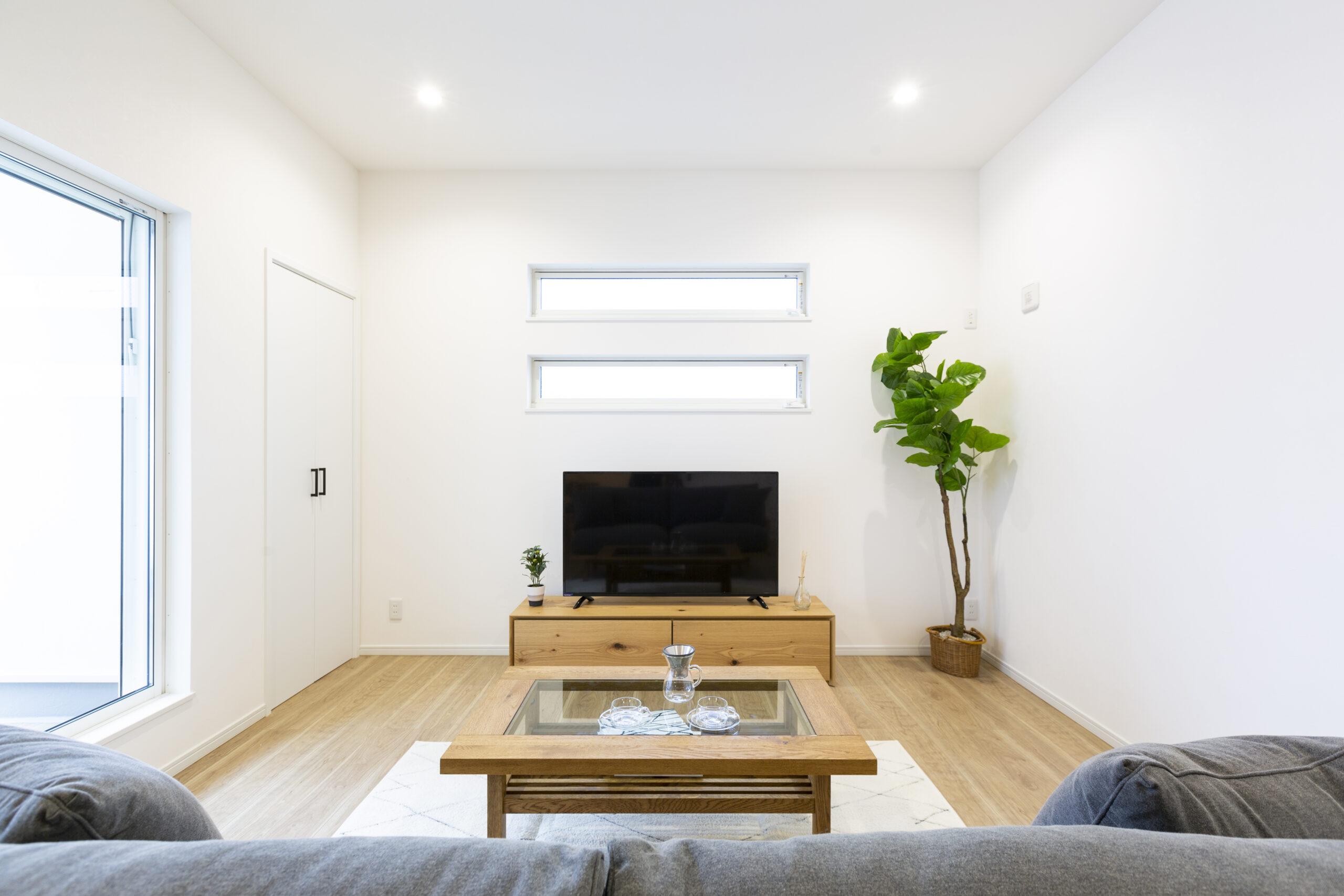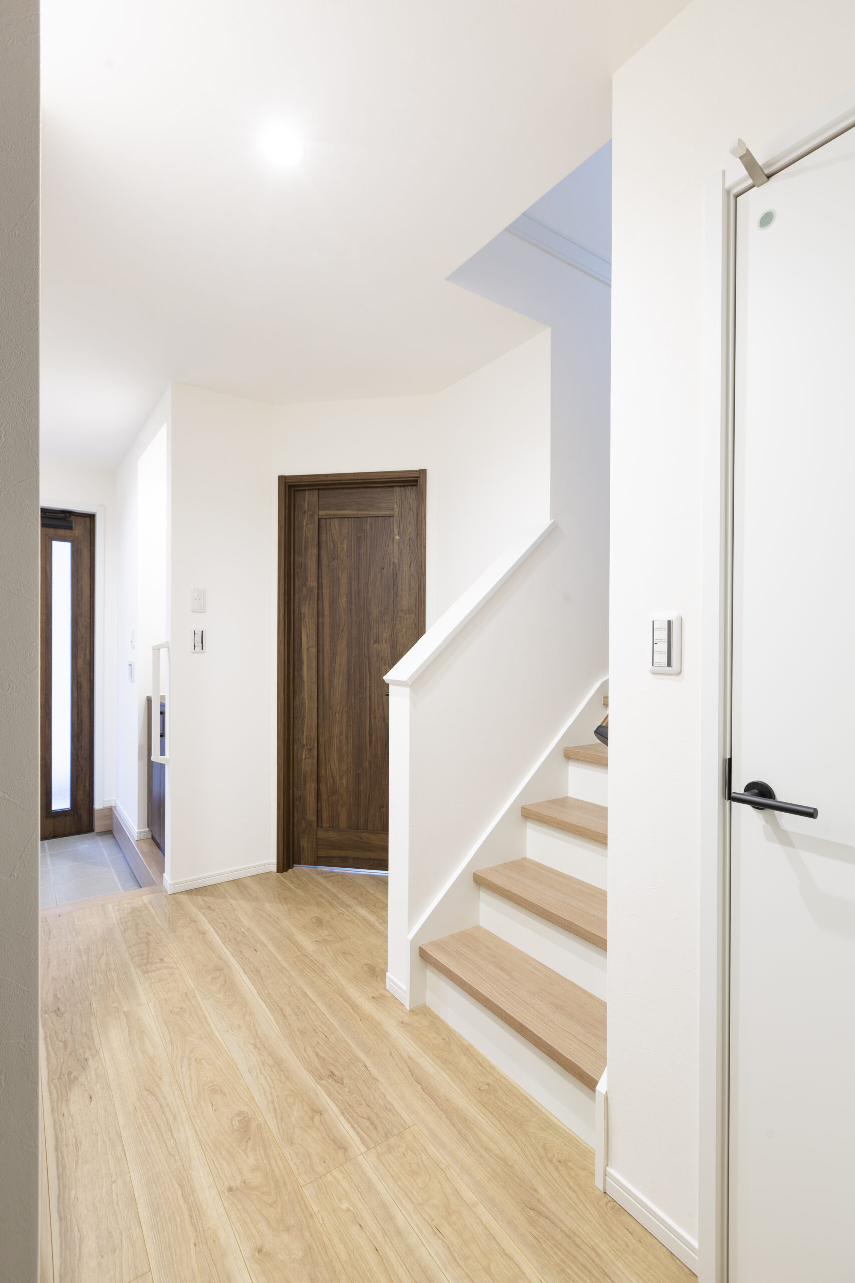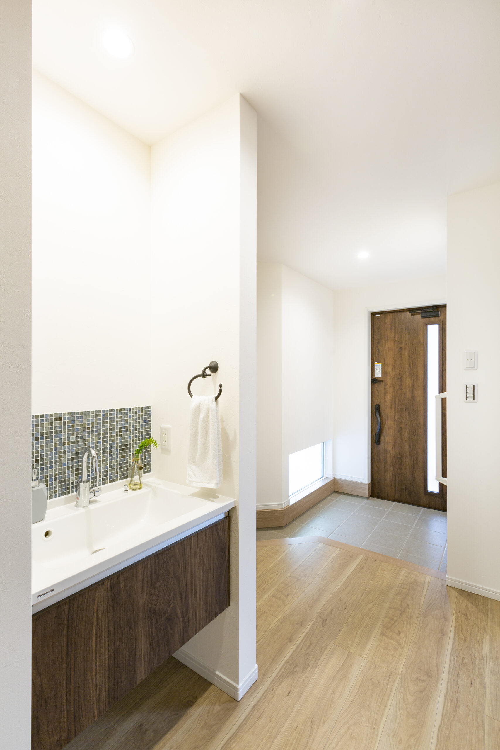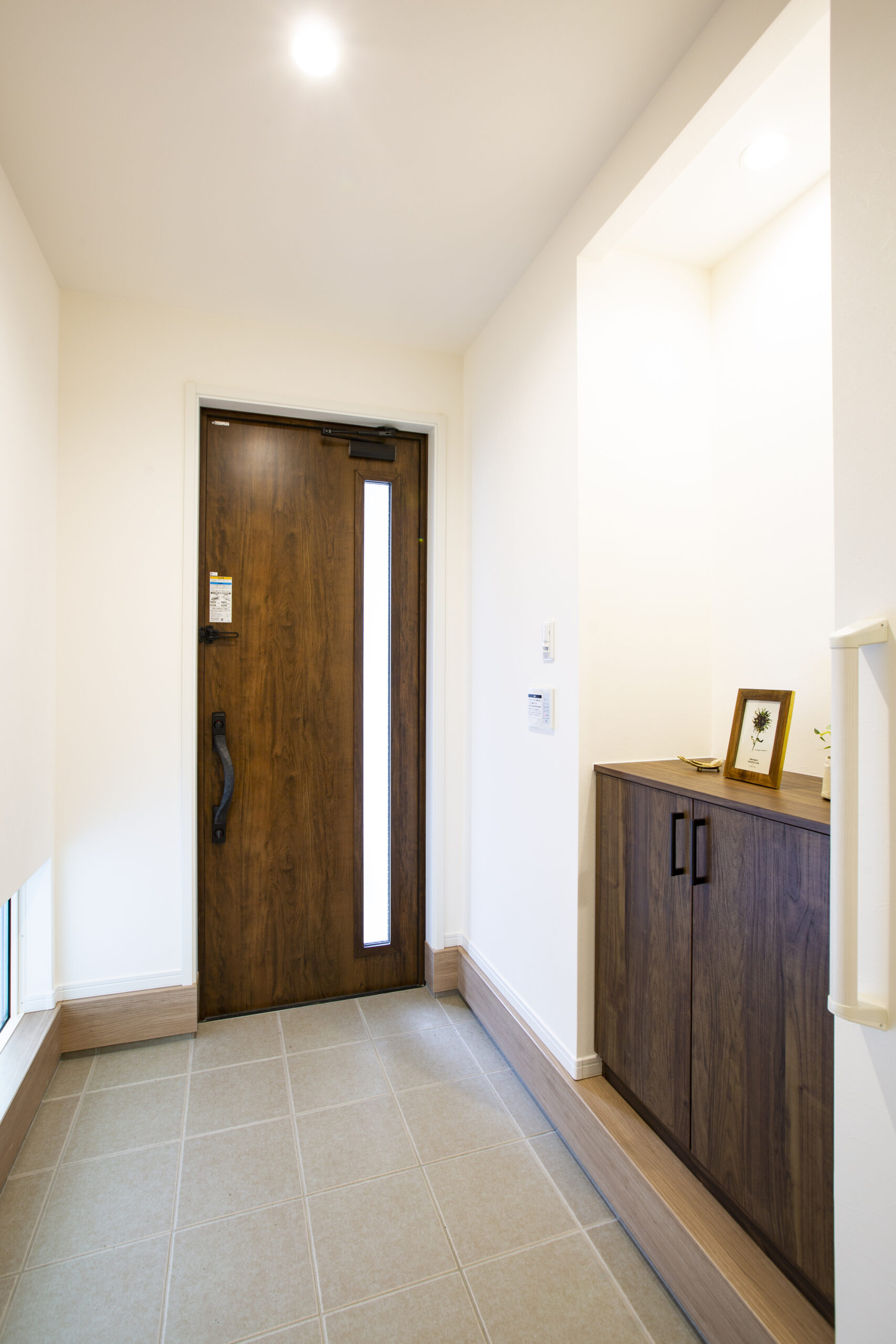 玄関の壁下部には横長の窓を設け、外からの光を取り込める明るい玄関ホールに仕上げています。