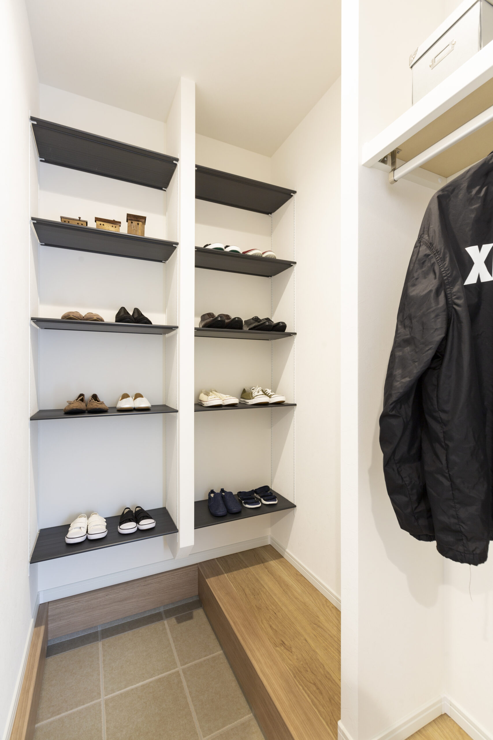また、玄関収納だけではなく、SICやコートクロークも設けて、玄関の収納力をアップ!ごちゃごちゃとしやすい玄関ですが、スッキリとさせる間取りを確保しました。